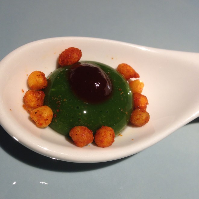 Deconstructed Paani Puri: amazing- it feels like a little bubble of happiness that bursts in your mouth. The ‘khandvi’ flavoured sorbet between the starter and main: unusually refreshing! Our server Karolis was an absolute delight. He totally went out of his way to make our evening special, and even had dessert sent to our table at the end of our meal as a gesture.