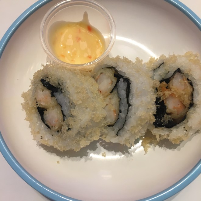 What we Ordered… crispy fried chicken, andddd *drumroll*… sushi!