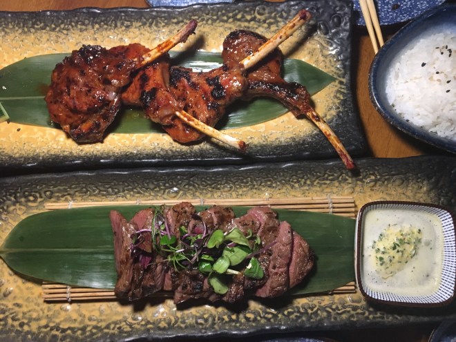 What we Ordered… Brussel sprouts, beef steamed buns, chicken katsu open steamed buns, lamb chops, wagyu beef steak(medium), rice…