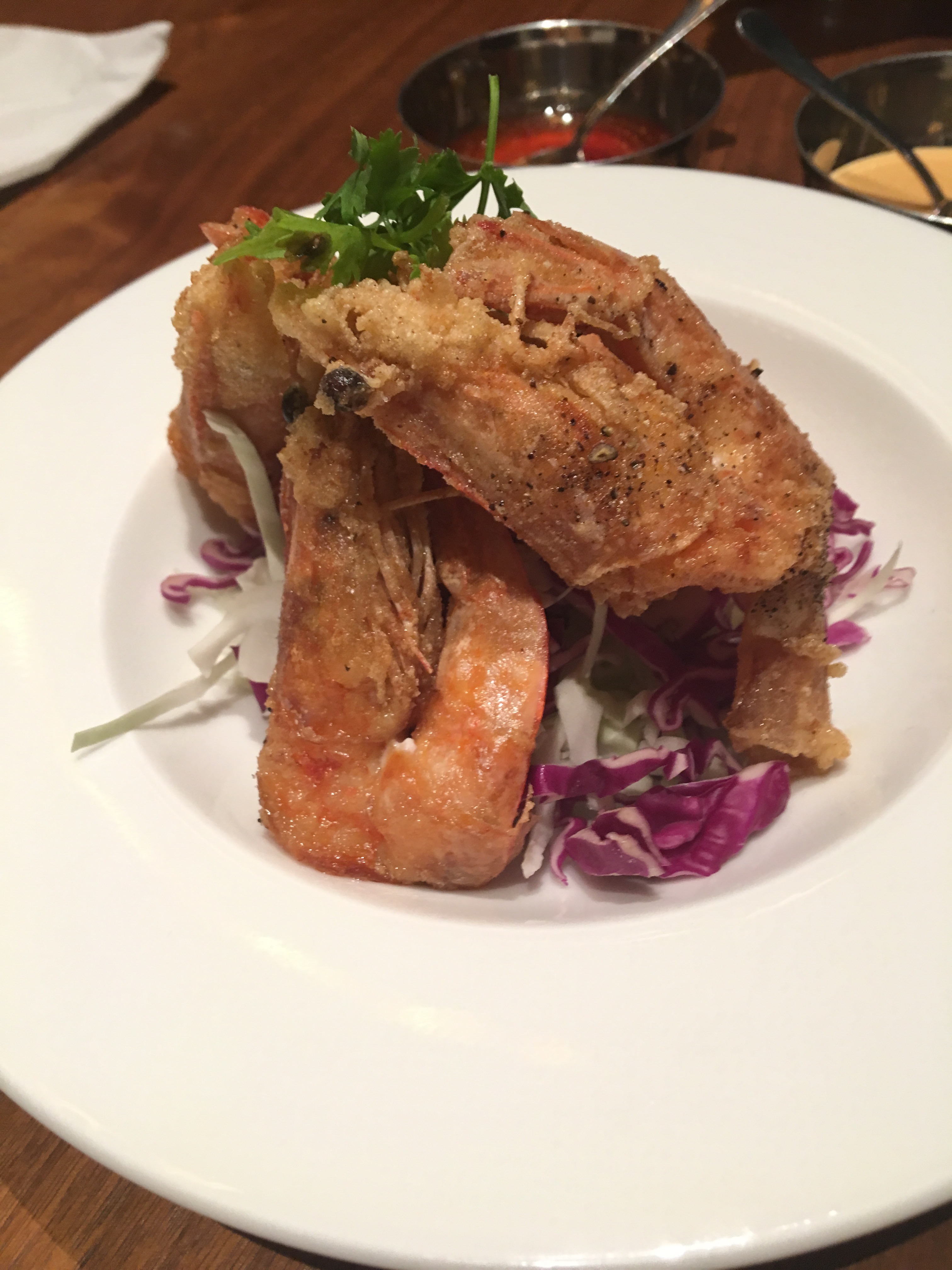 What we Ordered… Raw papaya salad, fried shrimps, tom yum soup, masaman curry, drunk man noodles, chicken satay, stir fried aubergine…